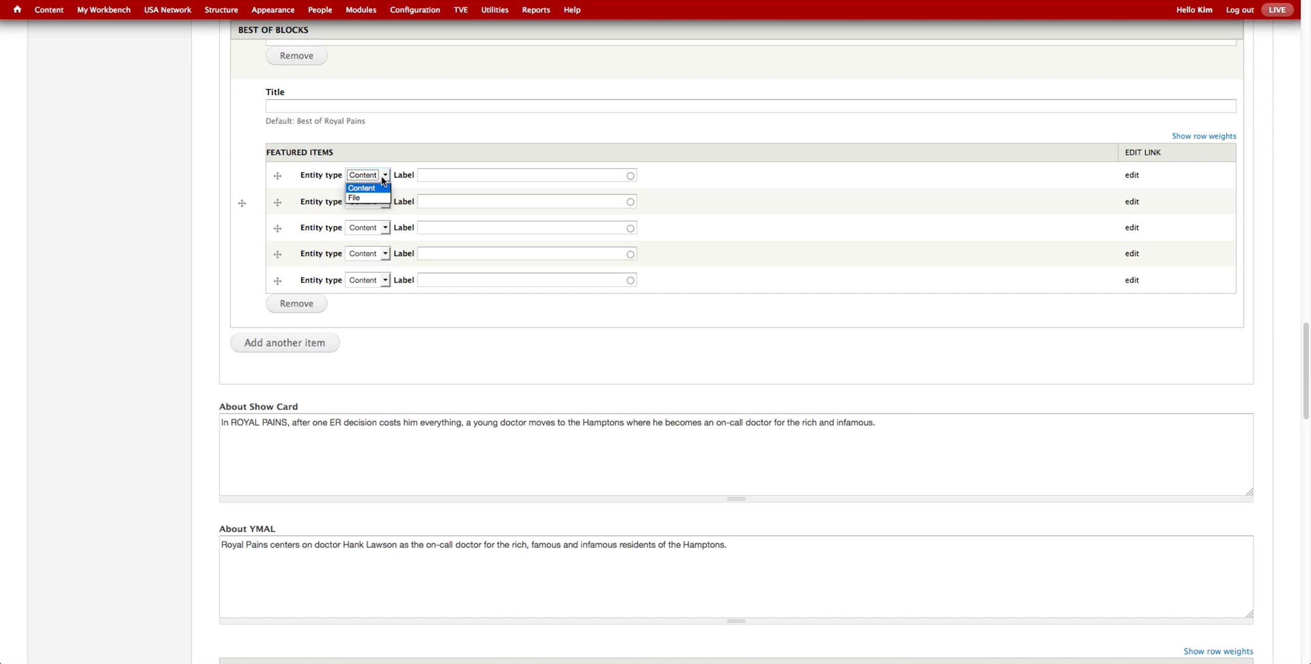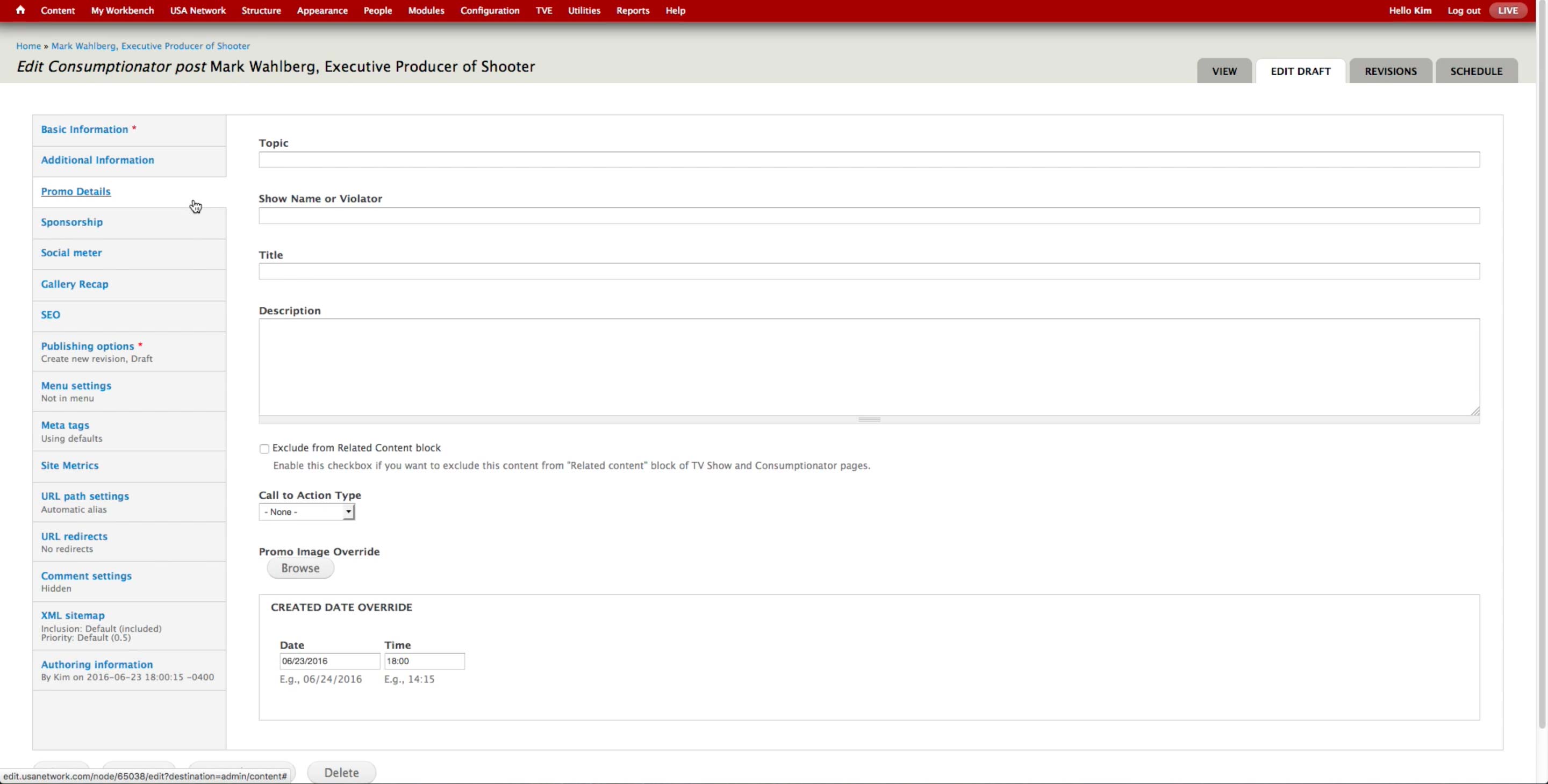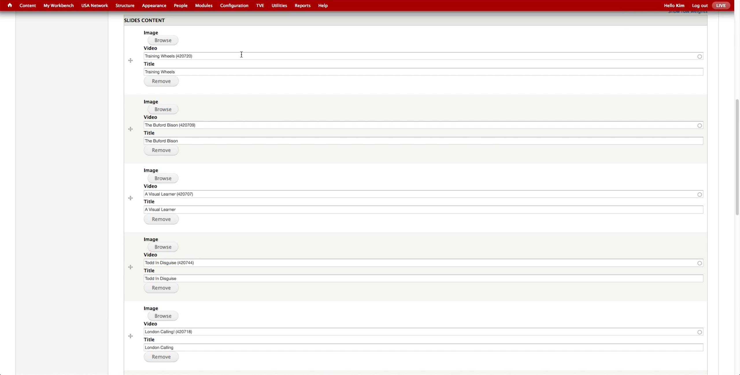 Once all the A-spots are created, the producer goes to USA Network > Administer USA Homepage and hit edit button of the corresponding day.