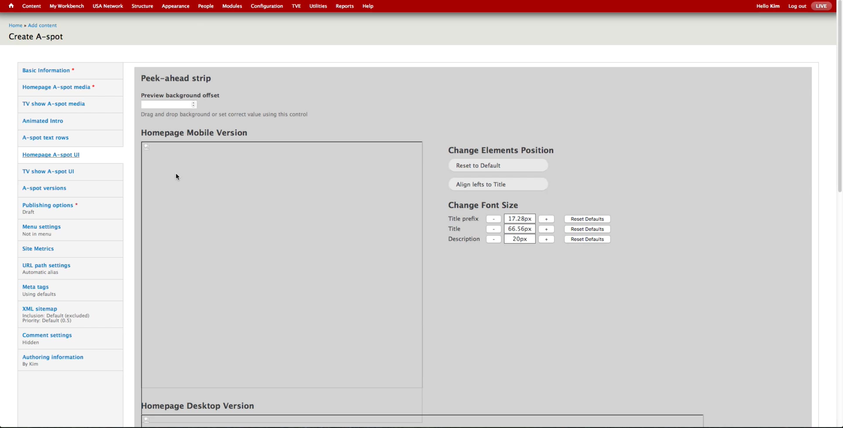 Producers create A-spots for the homepage and show’s landing pages. They set which elements to display as well as where on the image those elements will go.