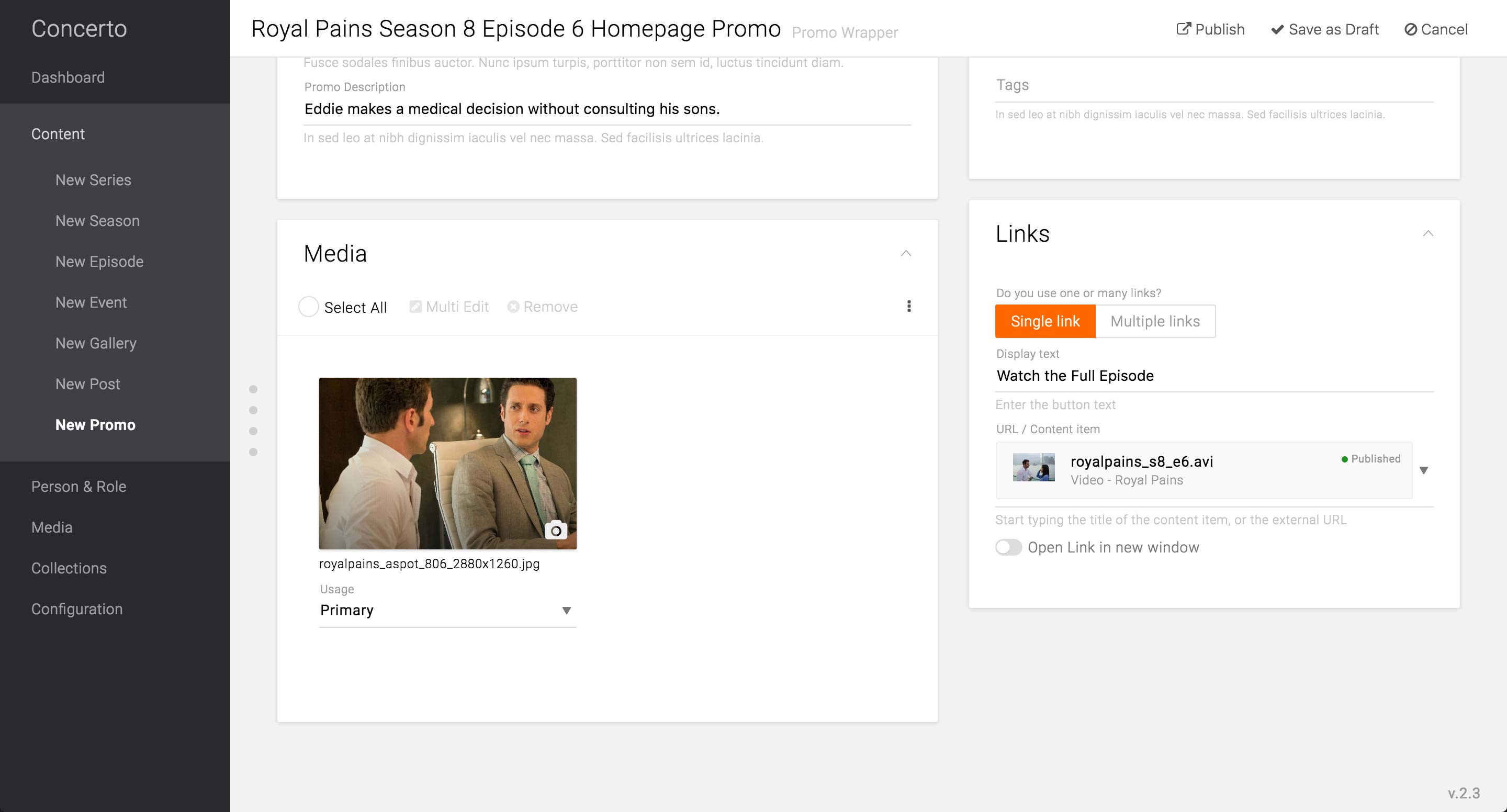 It also features a separate Promo Title field, which would be the consumer-facing title. The required Title field would be only used for the internal searching purposes.