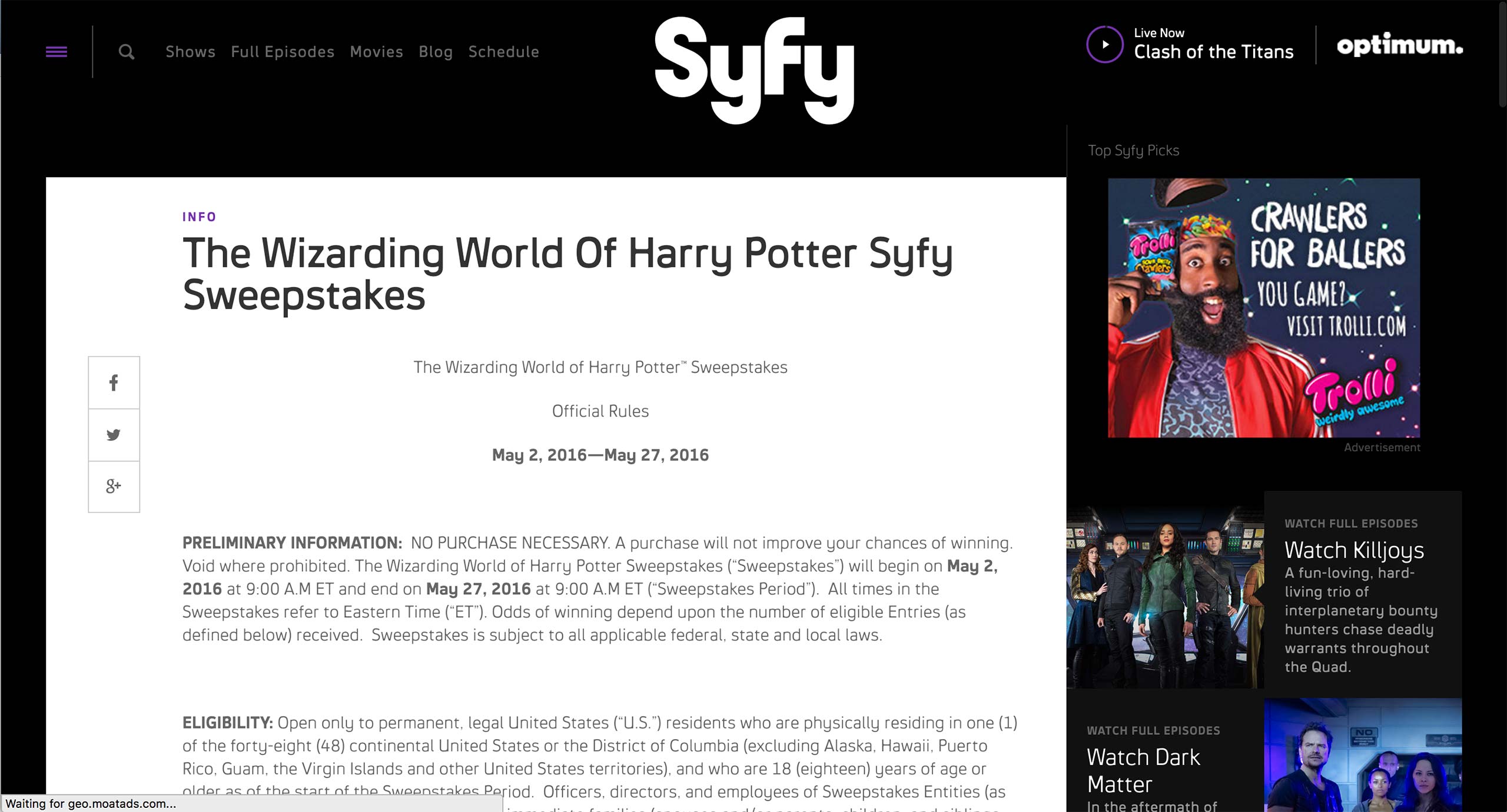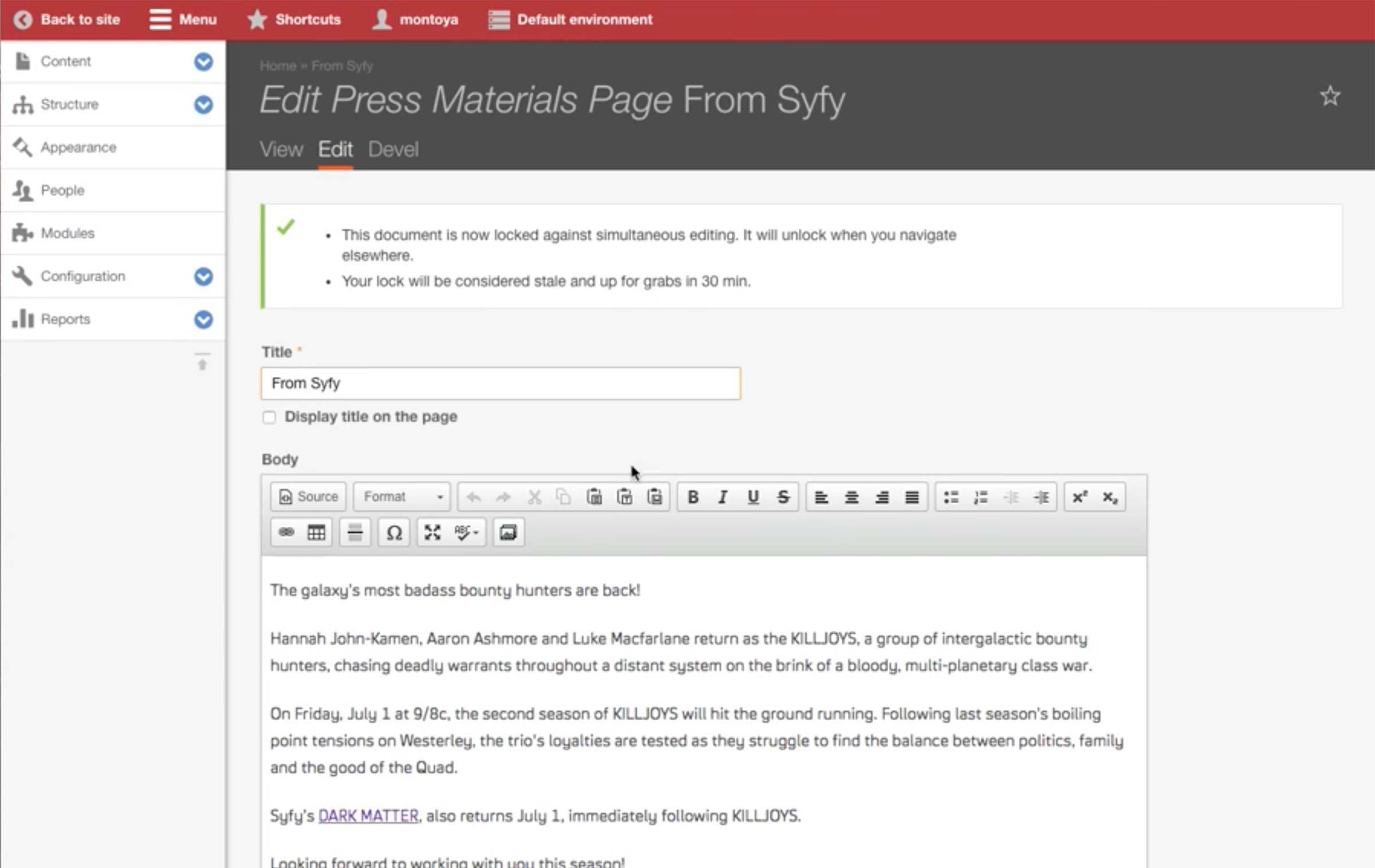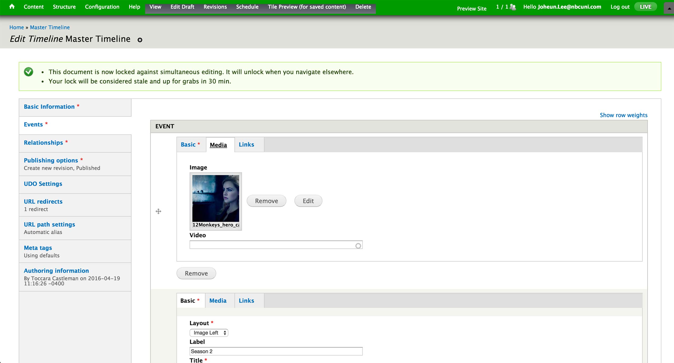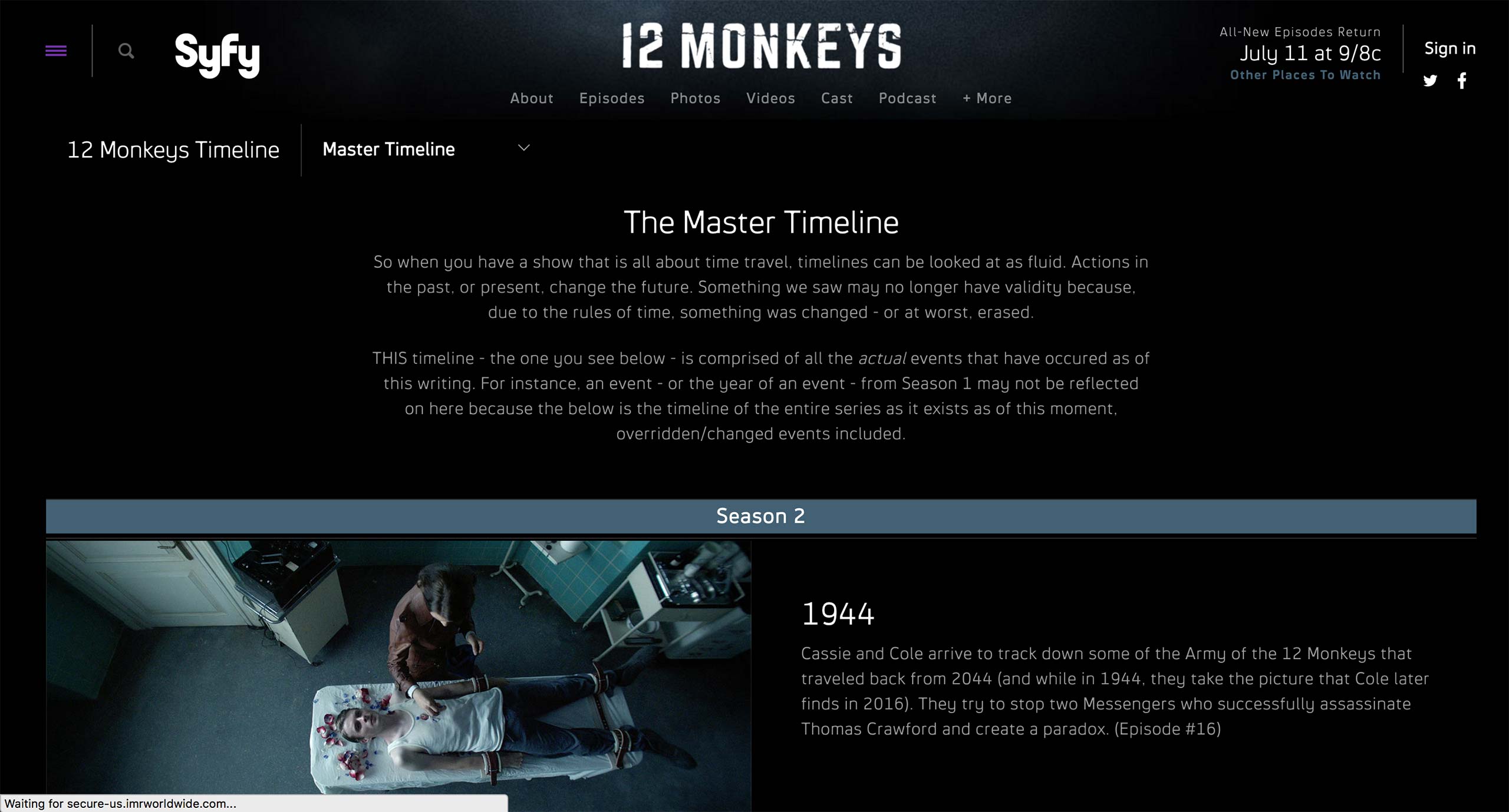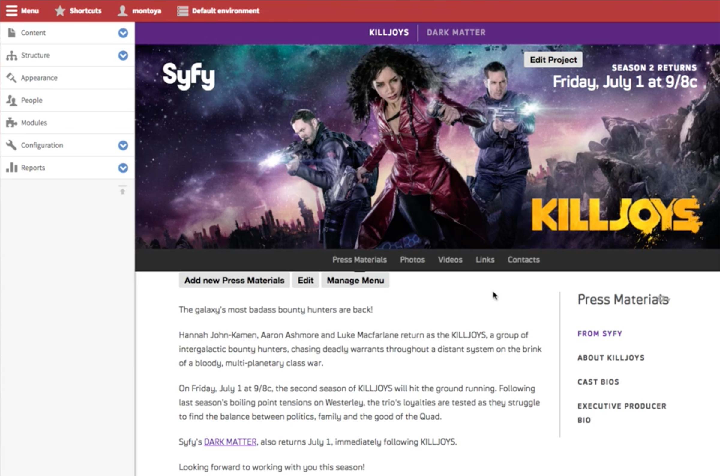 Lastly, the relationship to the show, season, episode is set in the Relationships tab if the page is associated with a specific show in Syfy.