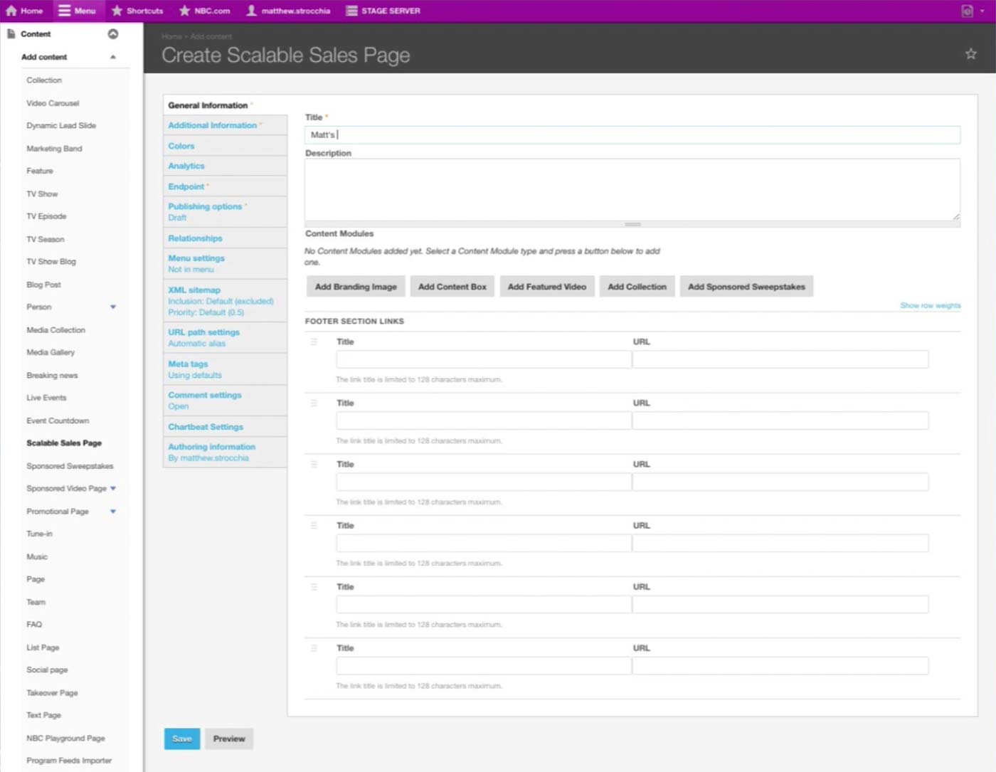 NBC is moving away from a free-form site and towards page as a saleable unit. They have a Content Type called Scalable Sales Page for any one-off page.