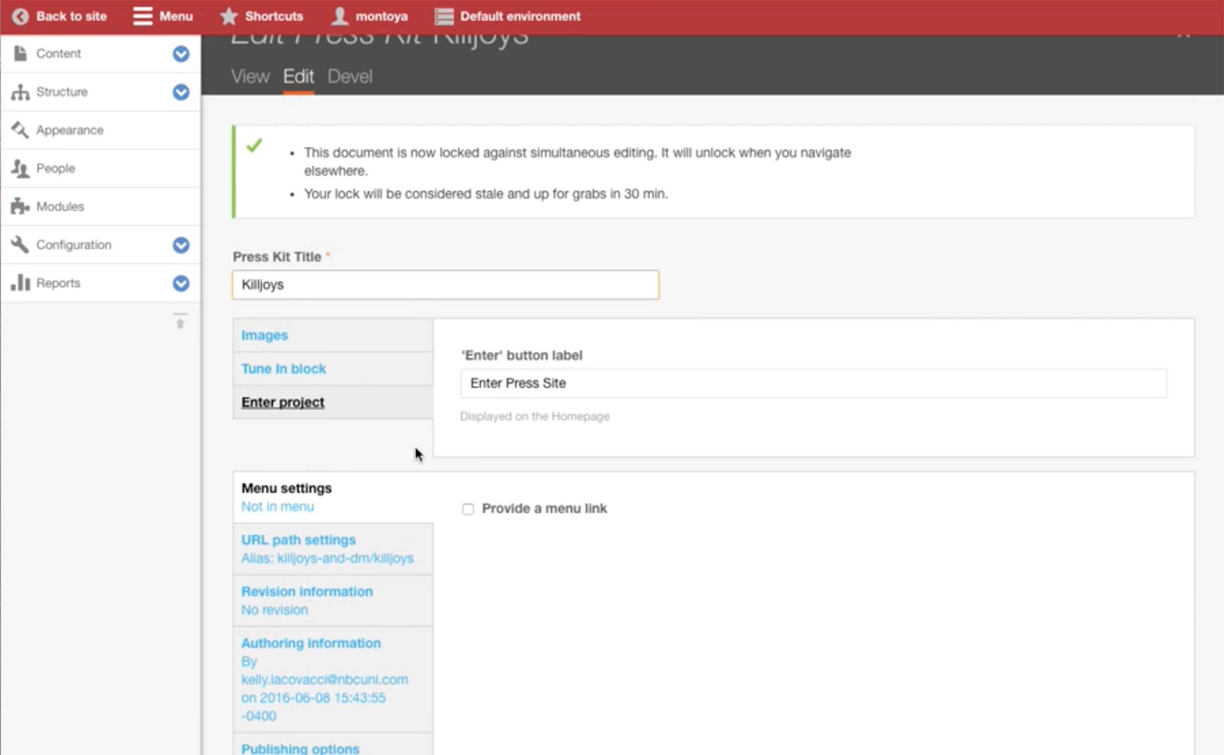 After selecting the Contents and Promo Wrappers to promote in the A-spot, the producer would hit Publish in order to make it go live on the site.