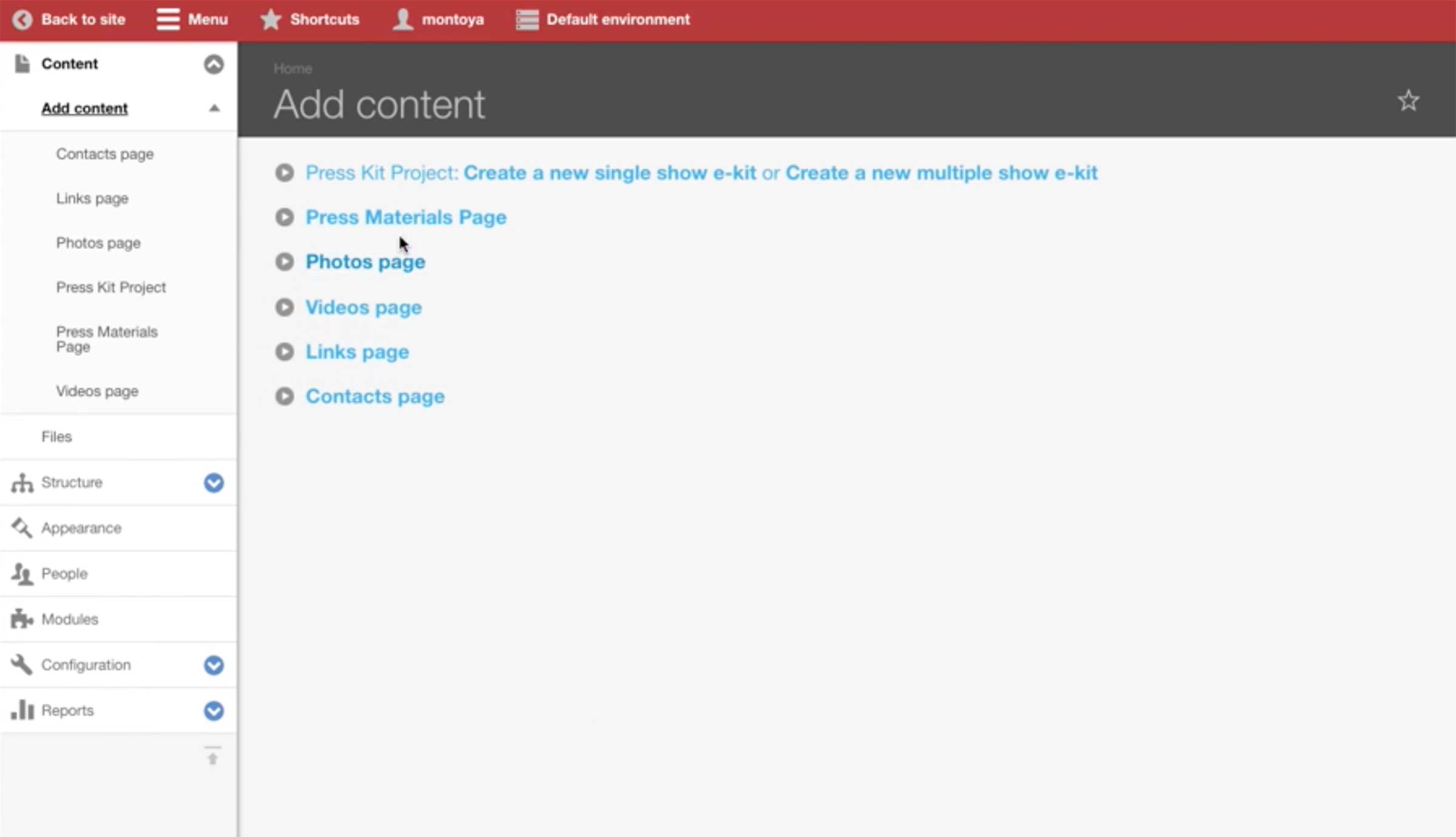 There are standard Title and Description fields, and underneath is the Content Modules section where producers add content in blocks.