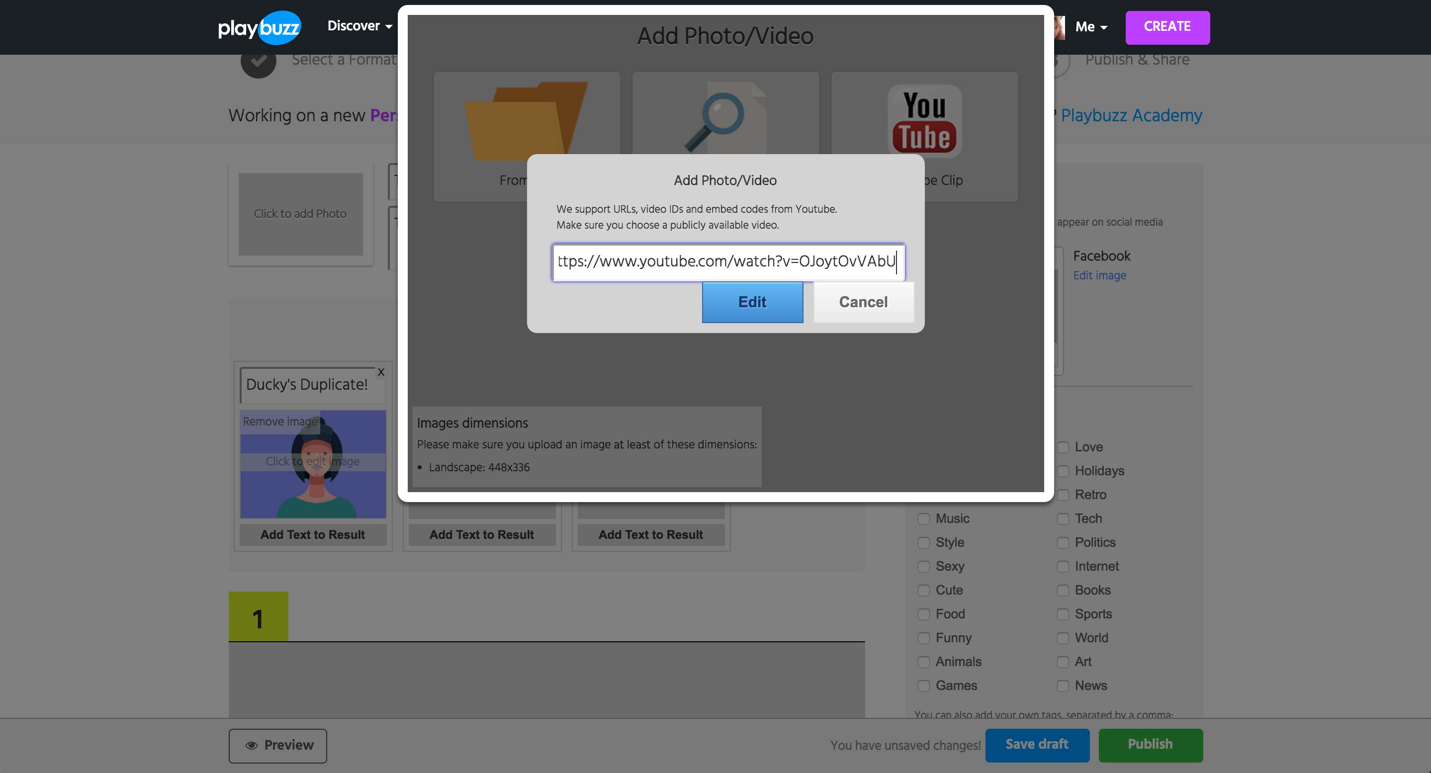 Uploading the videos in the similar manner as in the Timeline Gallery, producer finds the video clip and titles it accordingly. The thumbnail of the videos are automatically pulled, so producer makes sure that the images associated to the video is high resolution.