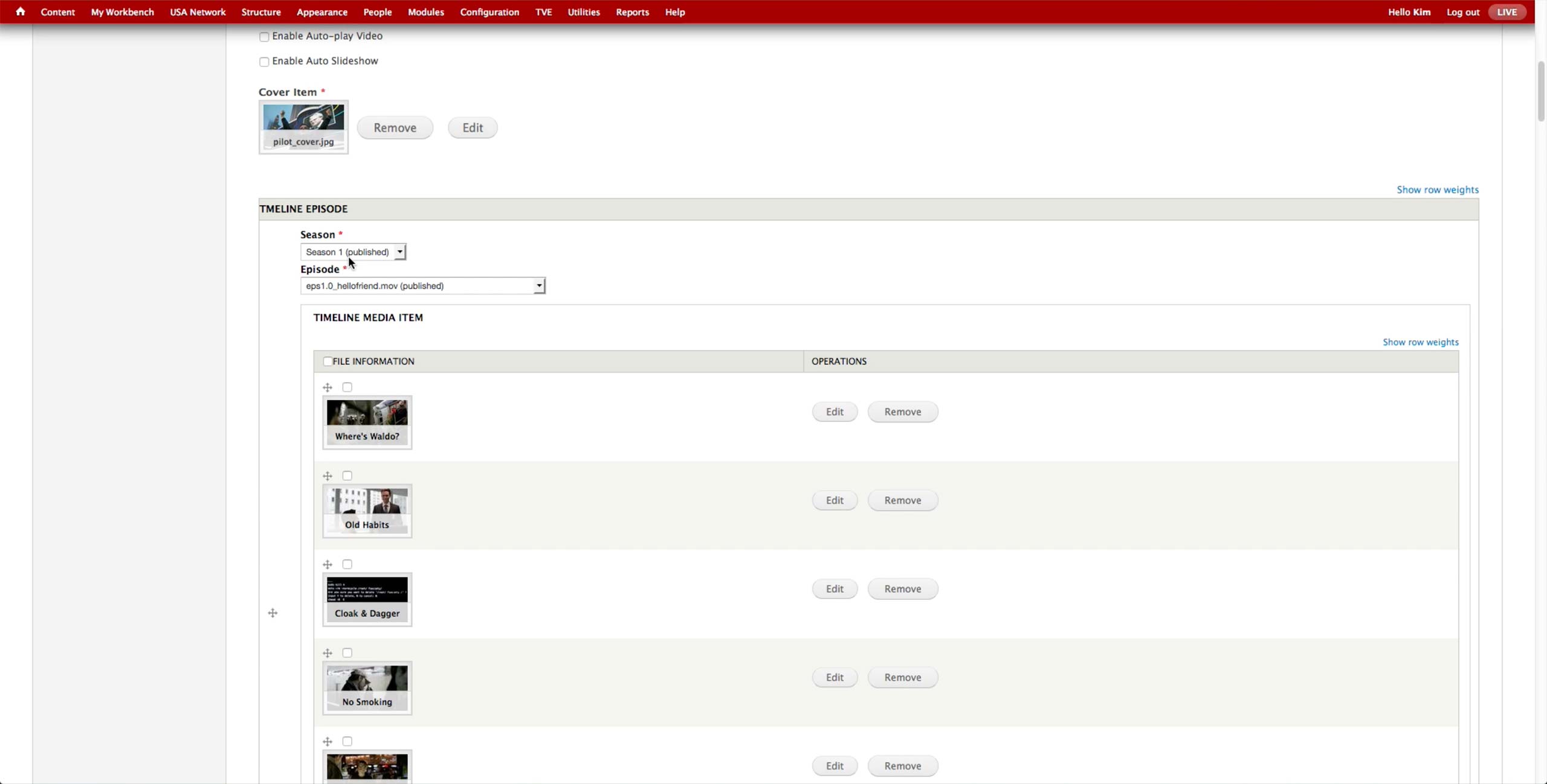 For each page of the gallery, producer selects the Season & Episode of the show and the images or videos to display. In case of the videos, producer needs to upload them through MPX and manually run Cron to leave the video in the CMS but unpublish them from the site. Then, she needs to select them one by one, which takes a long time.