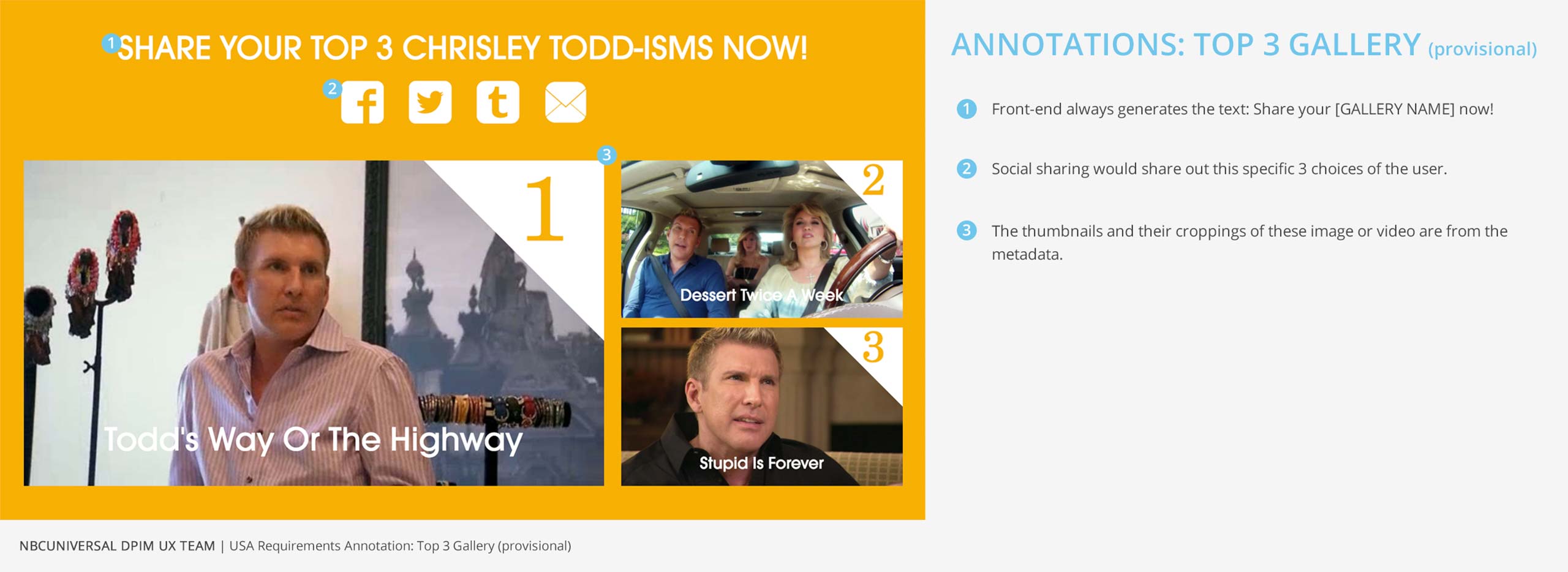 Top 3 Gallery allows the user to choose top 3 videos out of the ones that are presented to them.