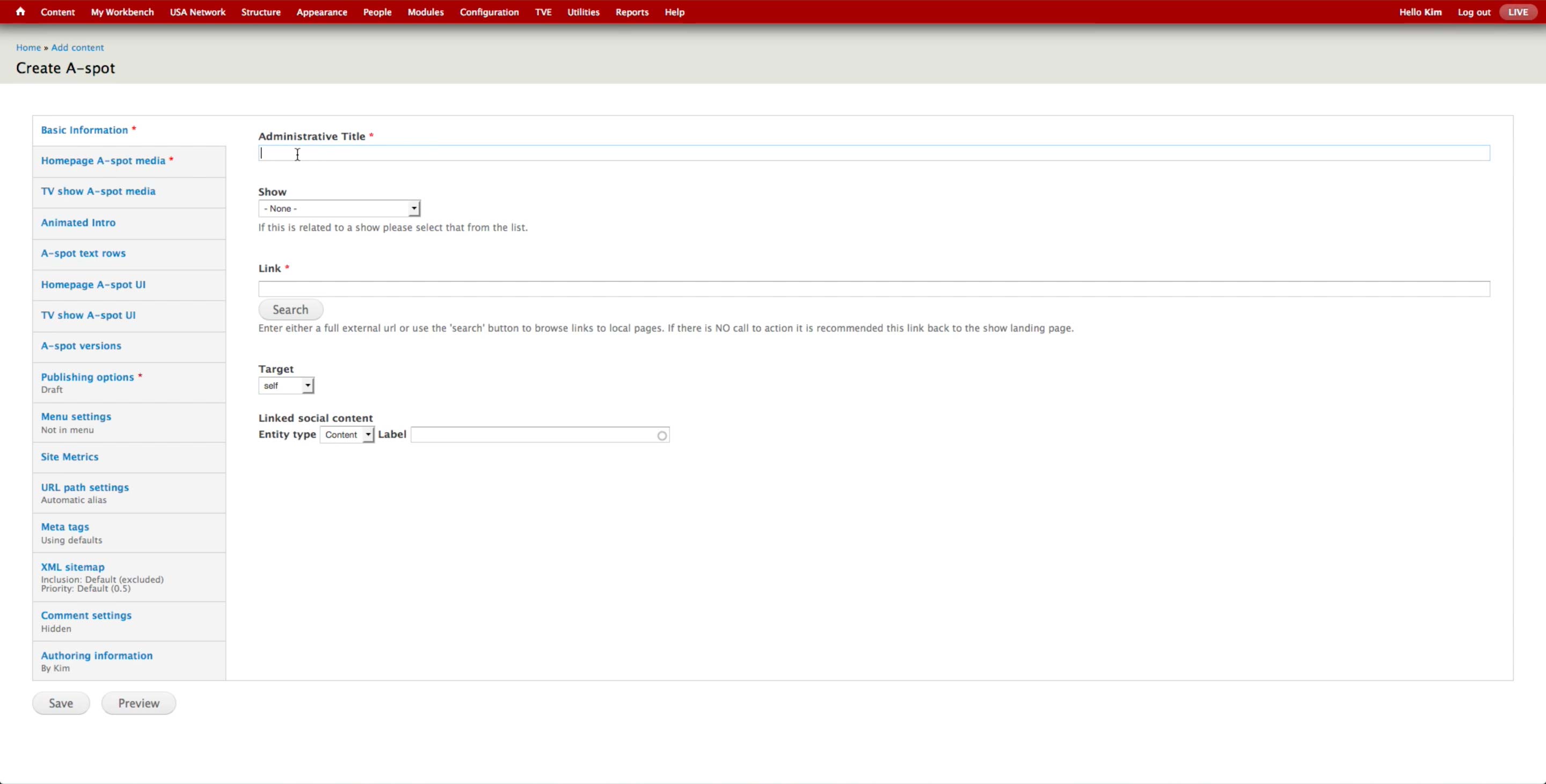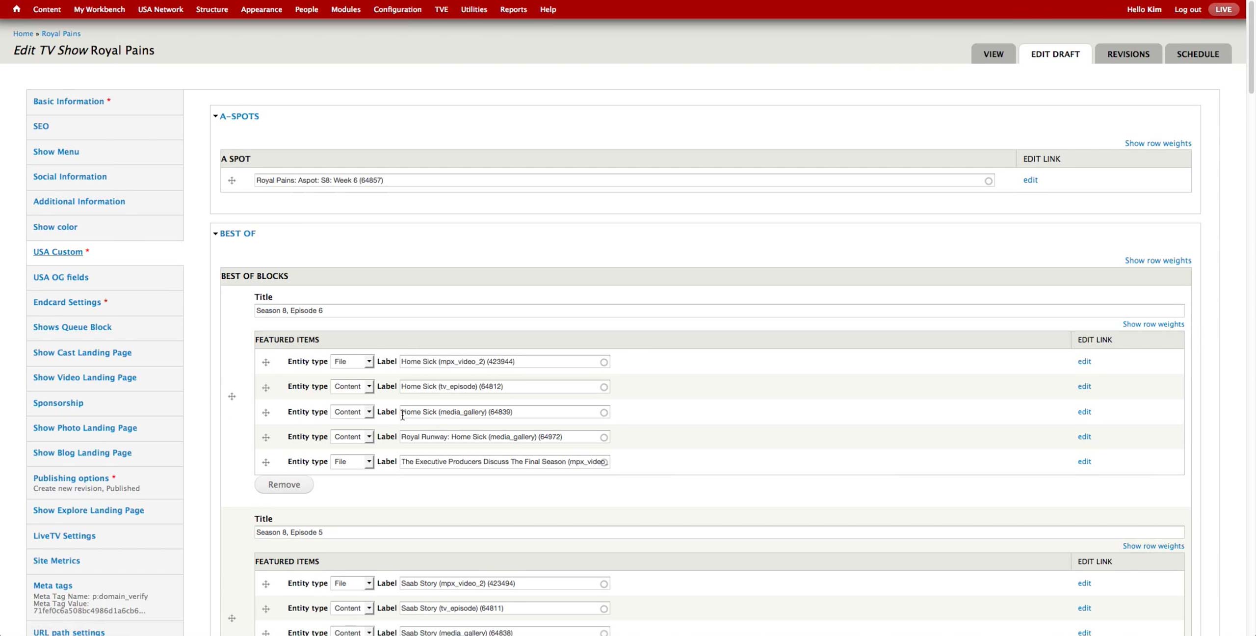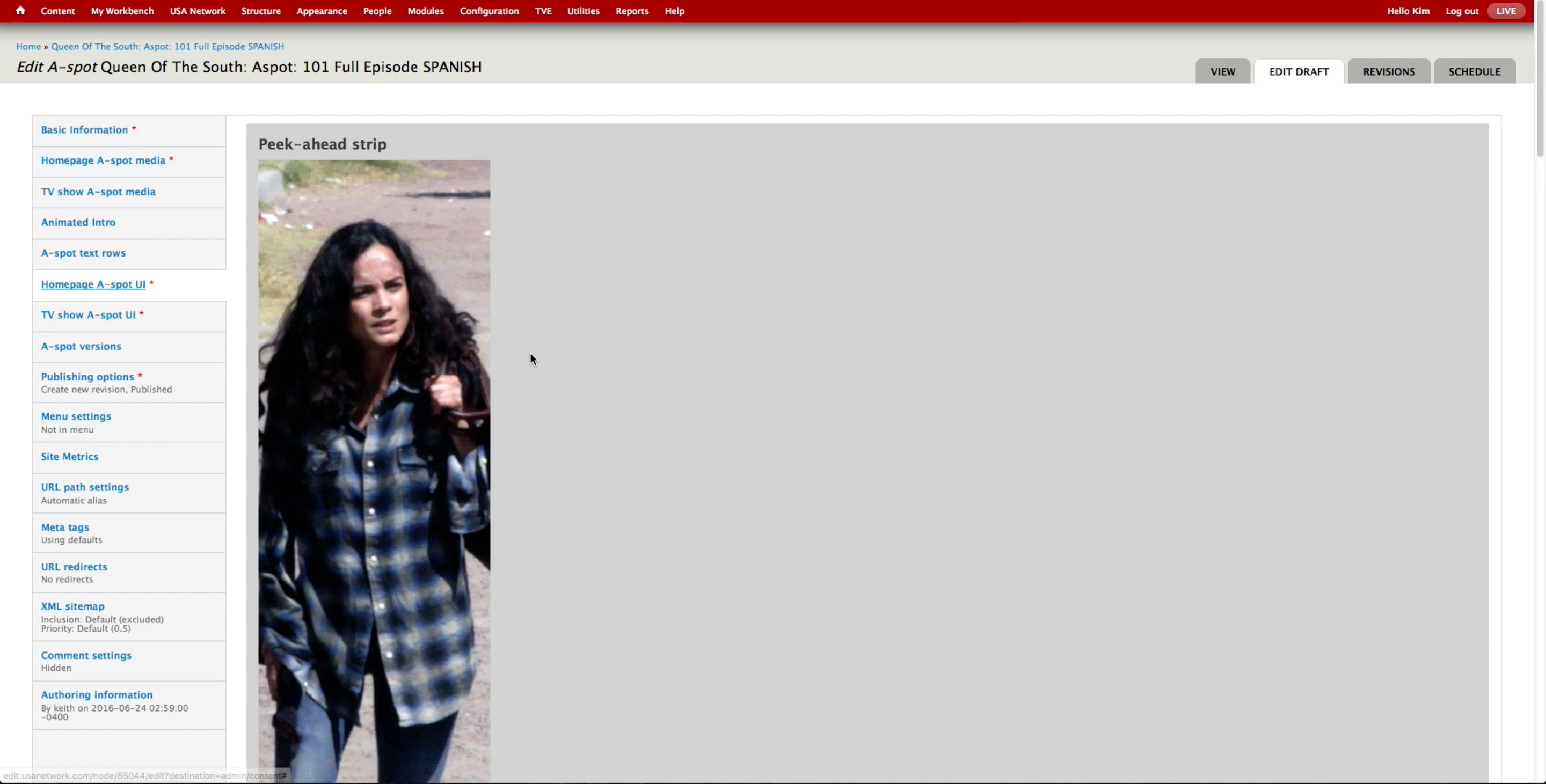 Once all the A-spots are created, the producer goes to USA Network > Administer USA Homepage and hit edit button of the corresponding day.