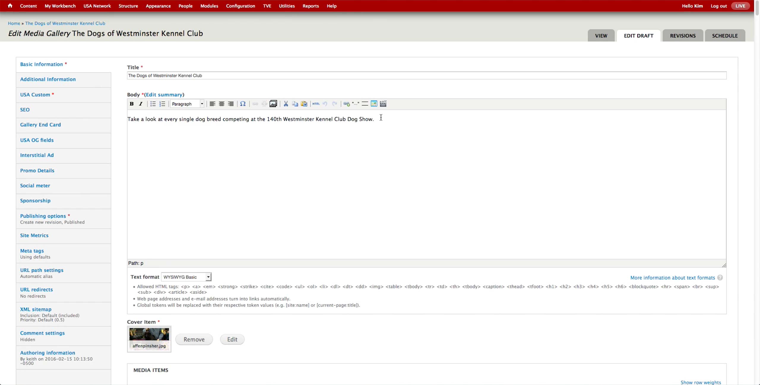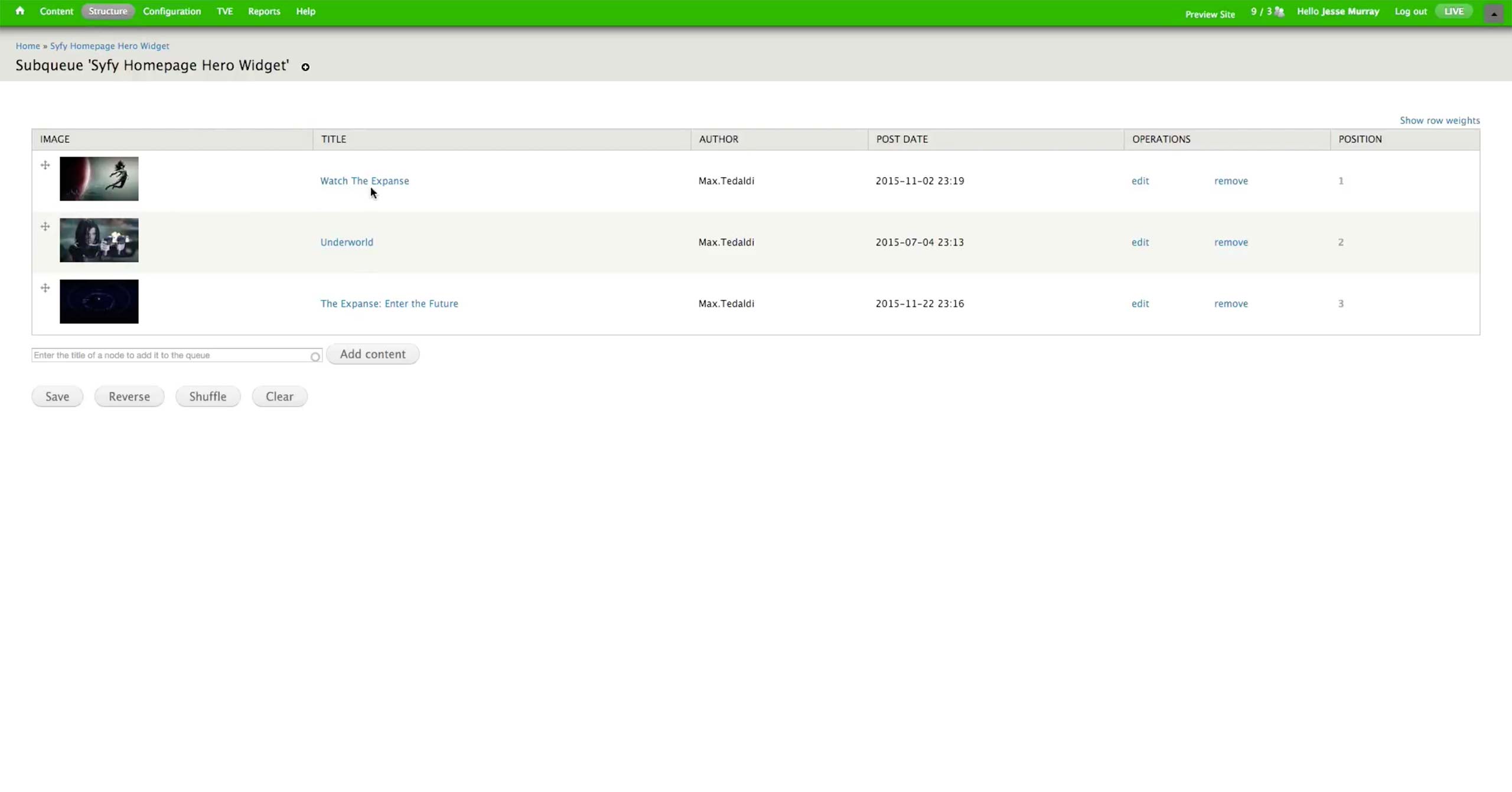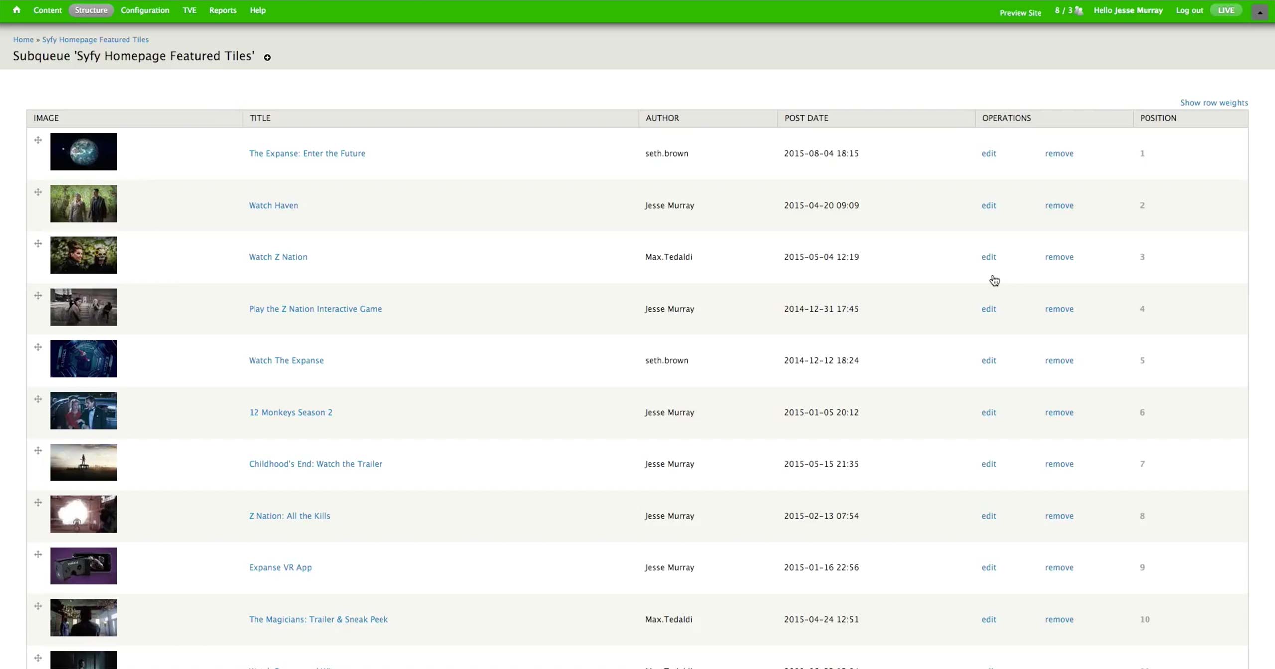 Once all the A-spots are created, the producer goes to USA Network > Administer USA Homepage and hit edit button of the corresponding day.
