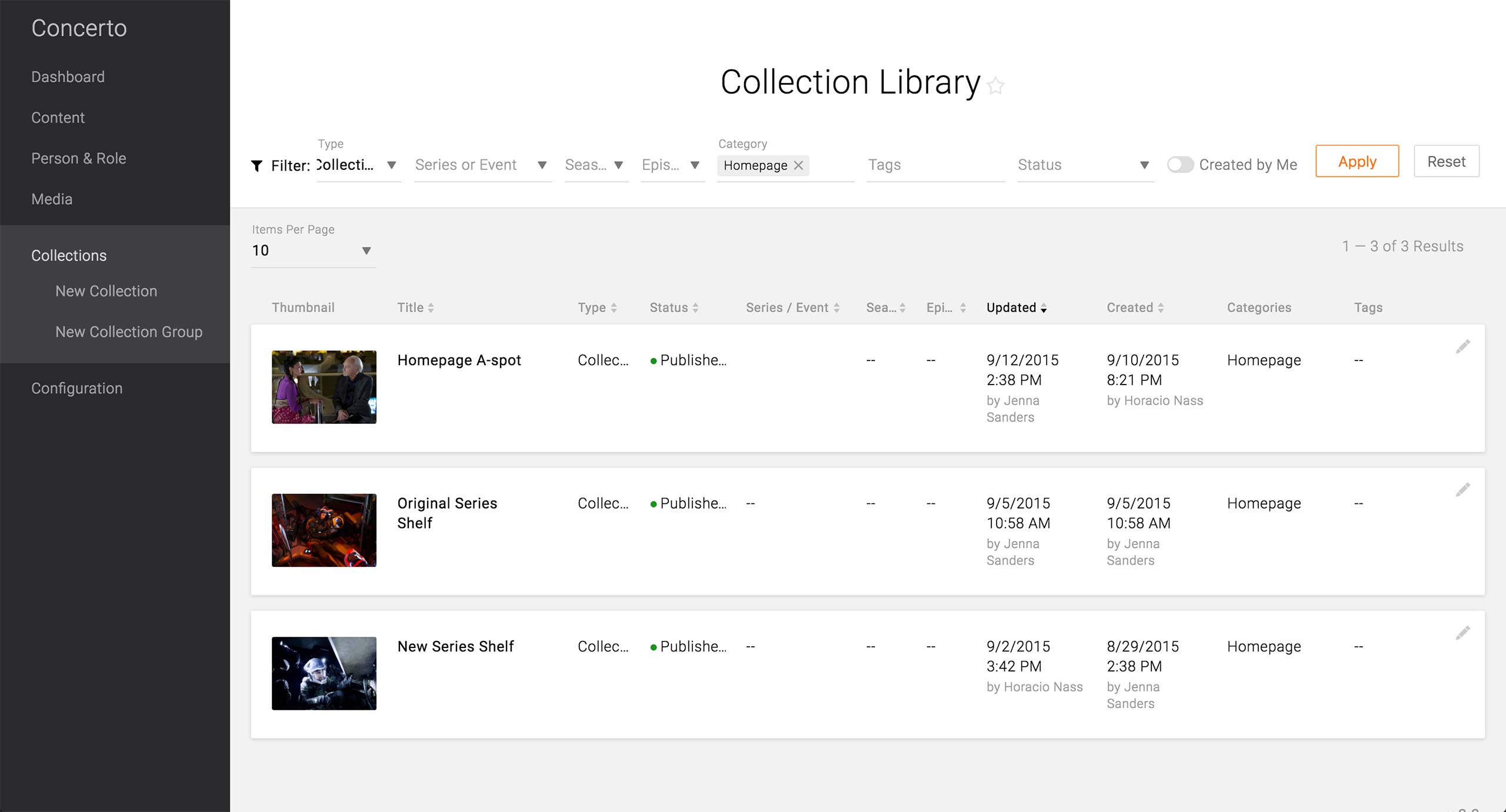 The item search in Collection needs to offer more information than just the title and the content type, as well as the option to further filter down the result. As Promo Wrappers’ titles would be consumer-facing, the titles may be quite generic, like the title of the series as in the example. Thus, there can be multiple Promo Wrappers and Content Type itself that have the same title, and it would become impossible to distinguish one from the others. There should be a thumbnail, unique number ID, date created/modified, and/or the creator/modifier in order to distinguish the items from the massive library of content.