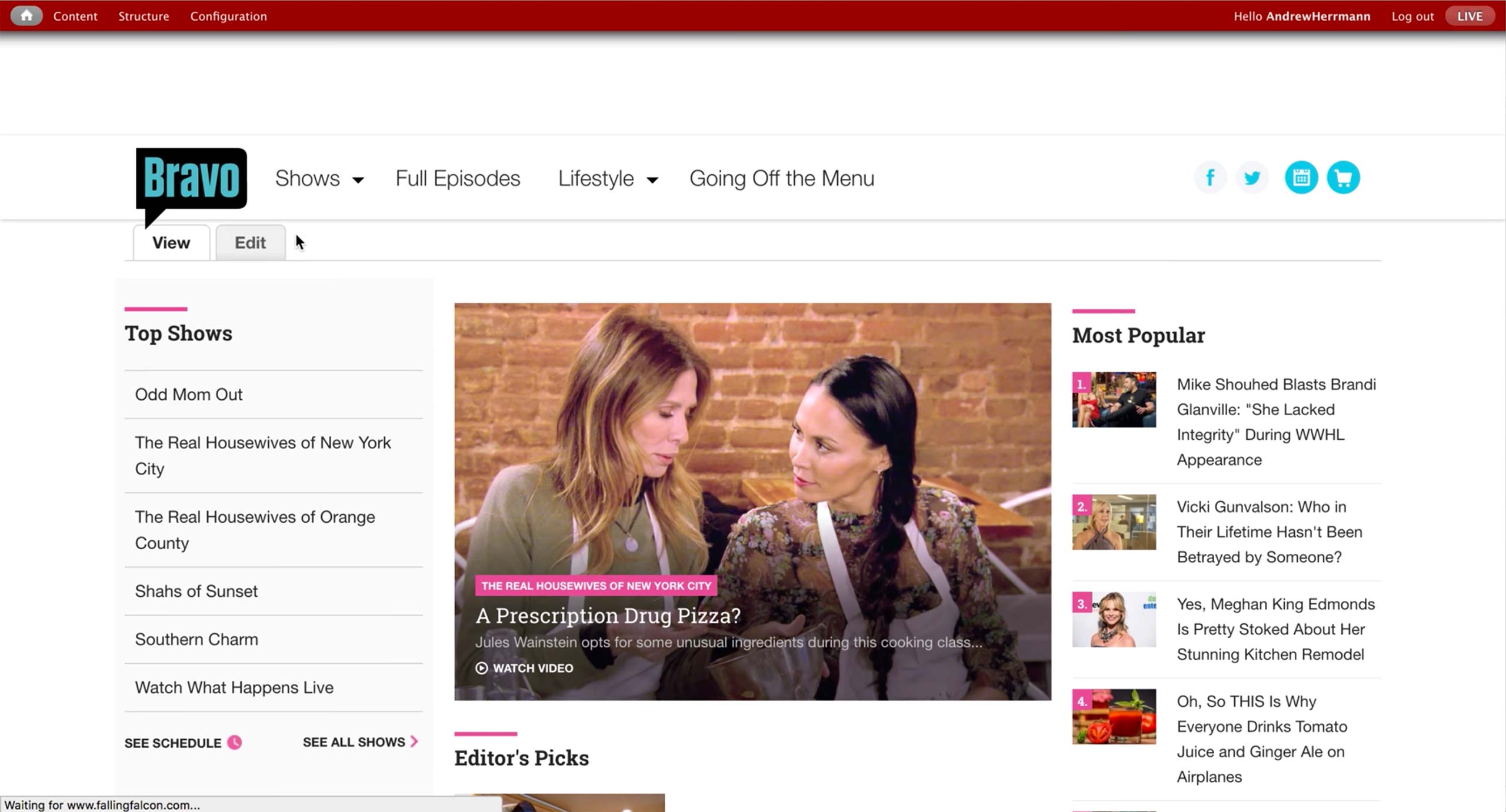Bravo has a different access point; when the producer is logged in, he can always see View and Edit options. Edit takes him to the Layout screen.