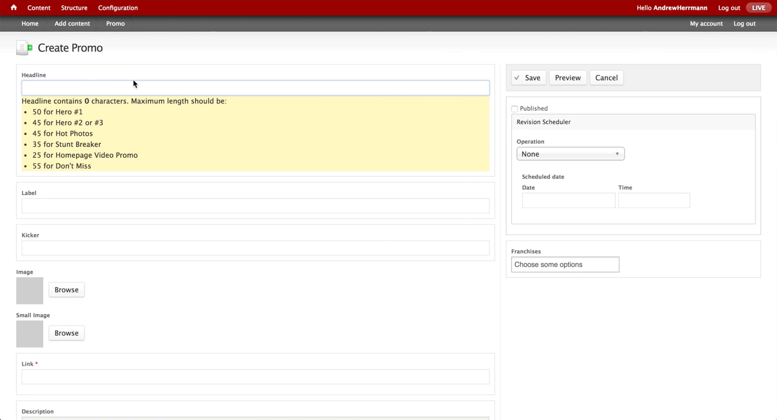 As we are designing the preview and schedule functionality, we will user-test the Promo content type within the full configuring Homepage workflow.
