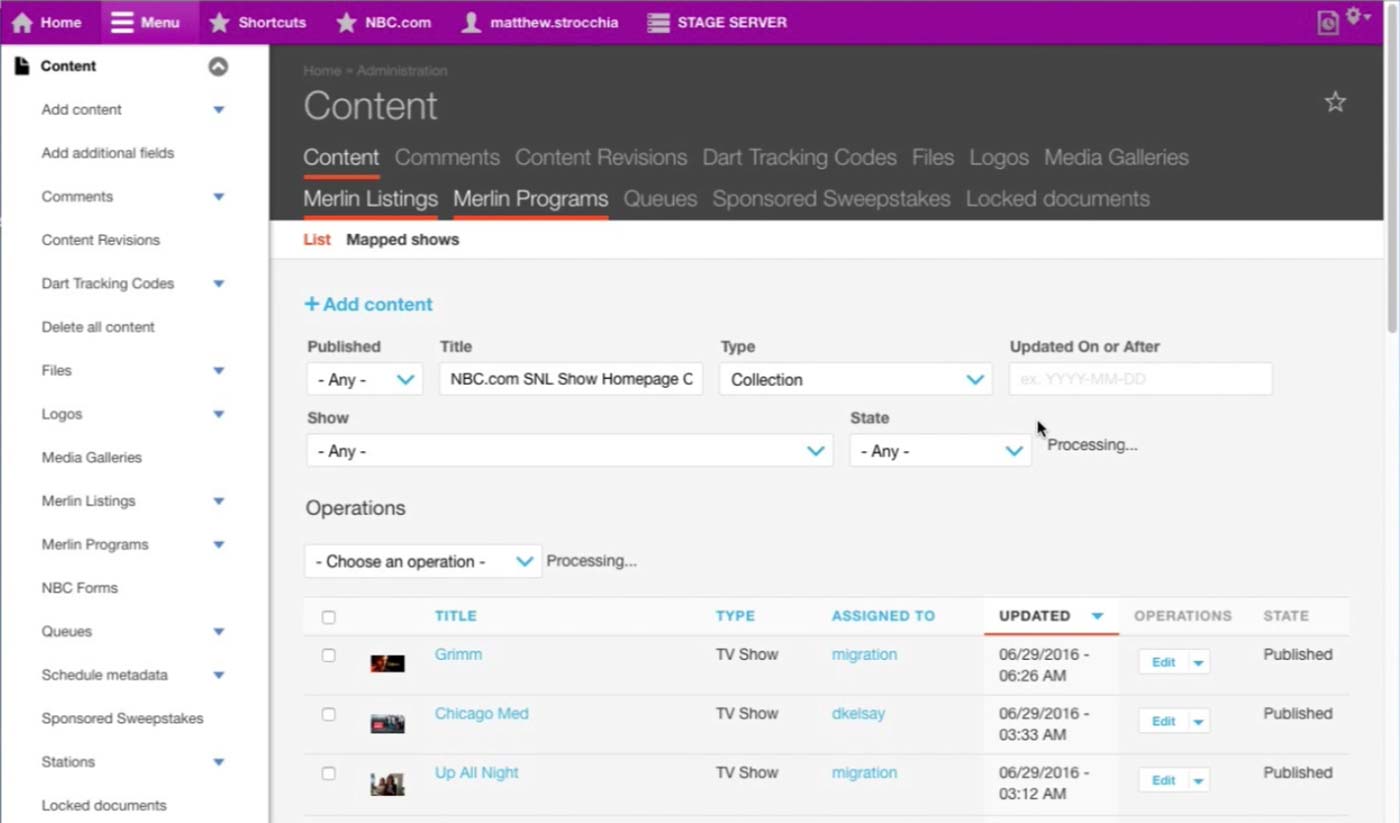 For each page of the gallery, producer selects the Season & Episode of the show and the images or videos to display. In case of the videos, producer needs to upload them through MPX and manually run Cron to leave the video in the CMS but unpublish them from the site. Then, she needs to select them one by one, which takes a long time.