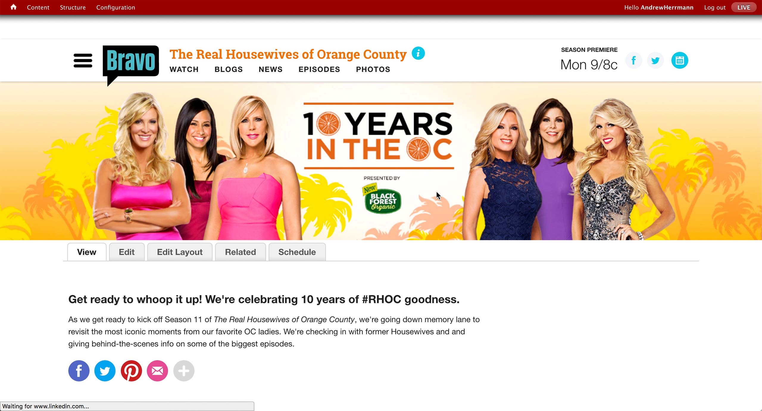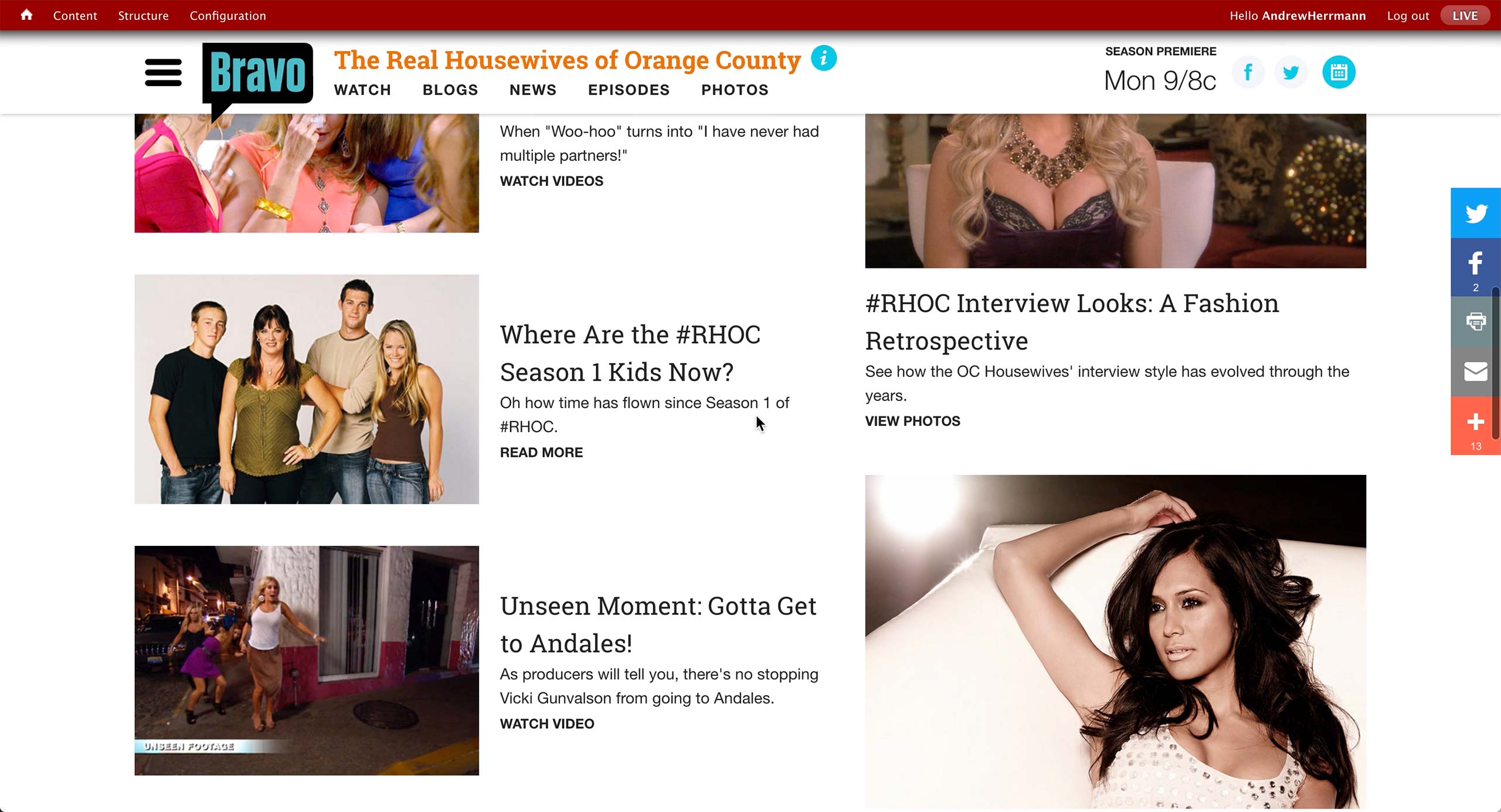 Also, an association to show, season, and episode is made if the microsite is related to a specific show in Bravo.