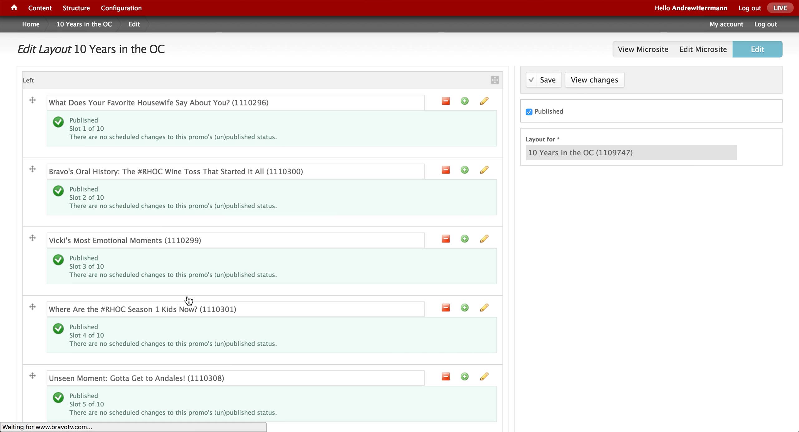 After selecting the Contents and Promo Wrappers to promote in the A-spot, the producer would hit Publish in order to make it go live on the site.