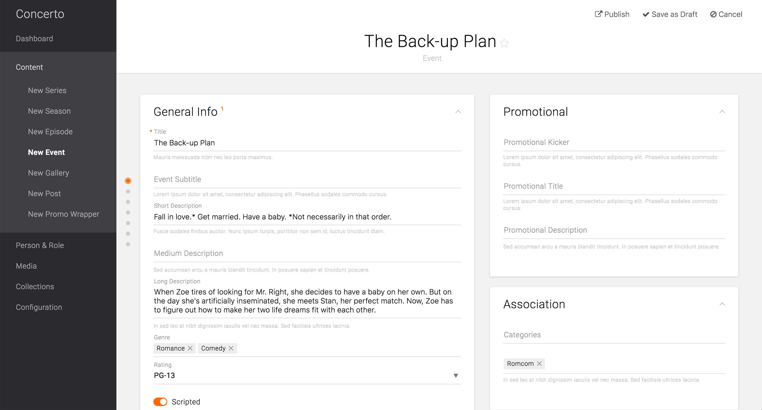 It also features a separate Promo Title field, which would be the consumer-facing title. The required Title field would be only used for the internal searching purposes.