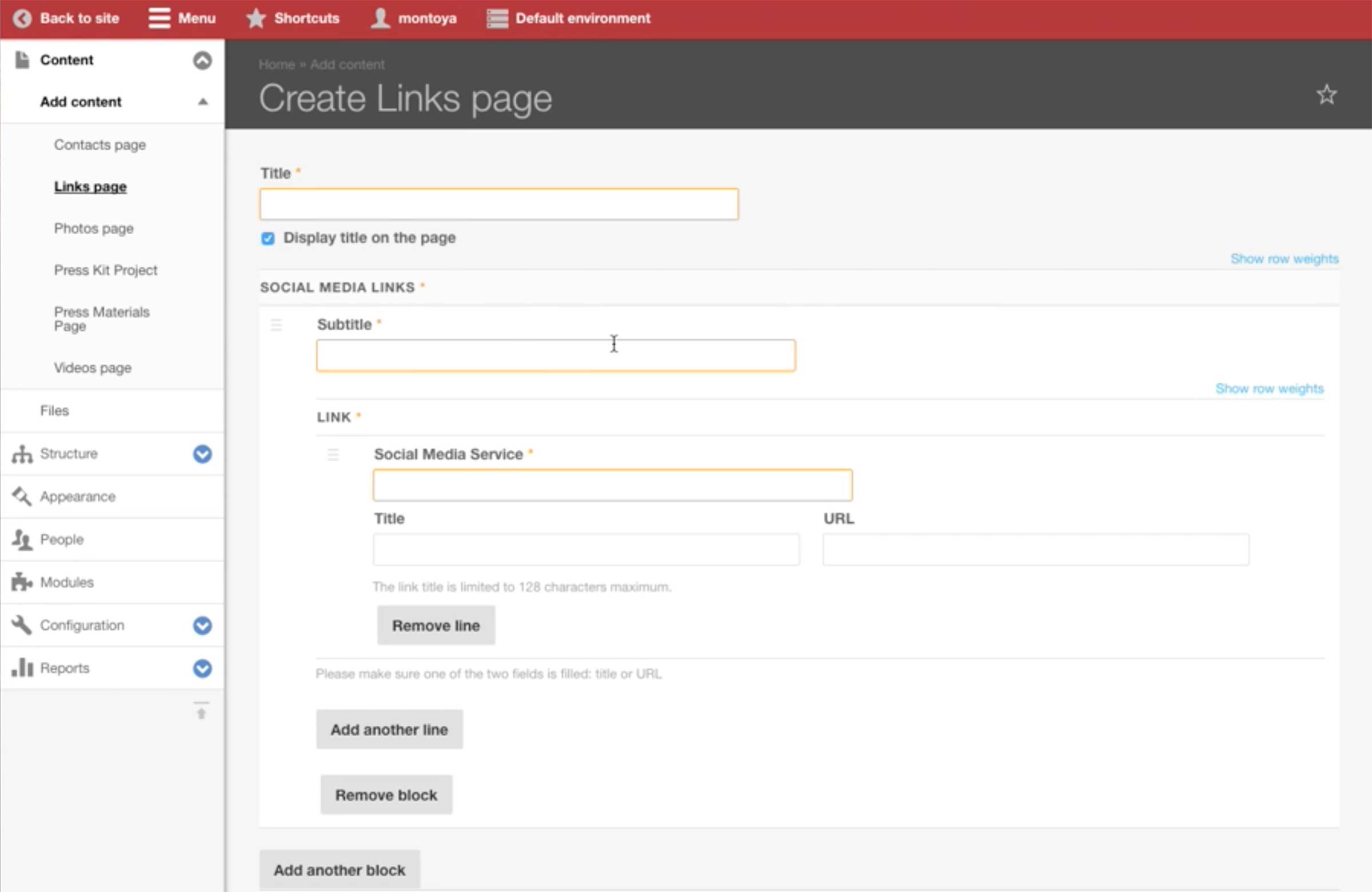 In the case the Promo only holds a single call-to-action button, producer can choose Single link option and enter the appropriate label for the button. In the URL / Content item field, she can either choose from the existing content type or enter a URL for the button to link to. There is also an option to select to open the link in new window.