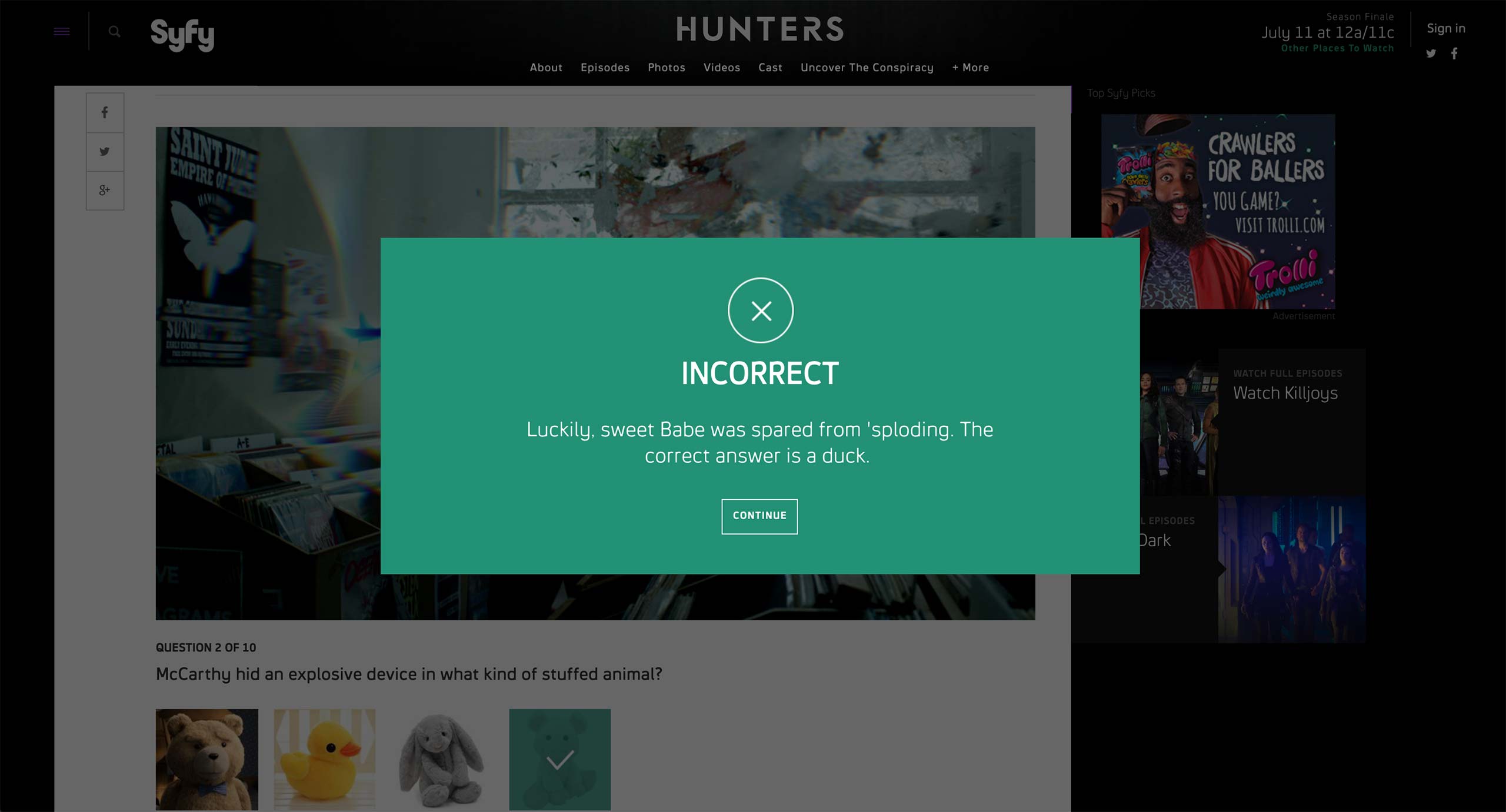 Quiz offers an interactive content where user can answer to questions about a show or about themselves.