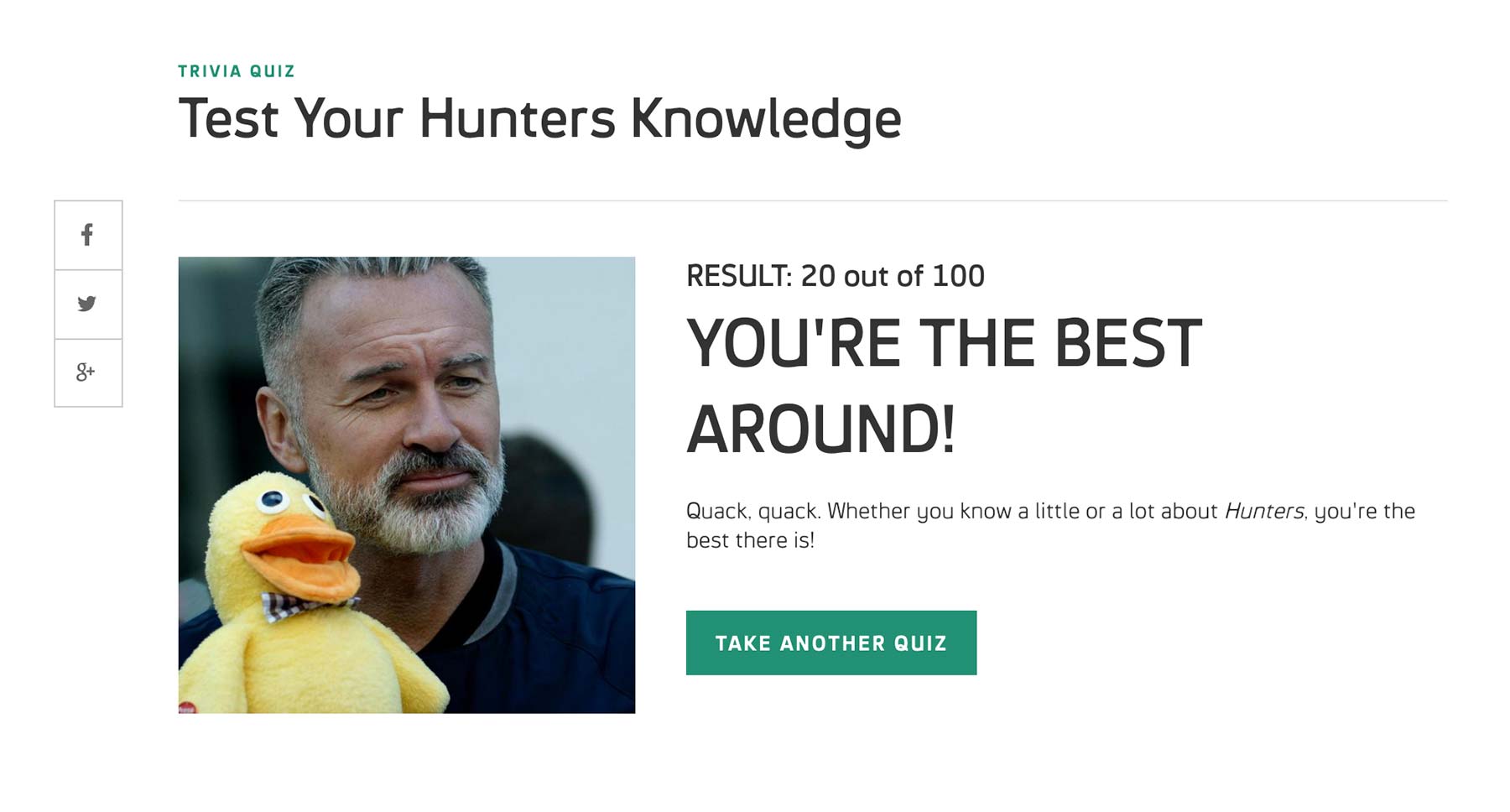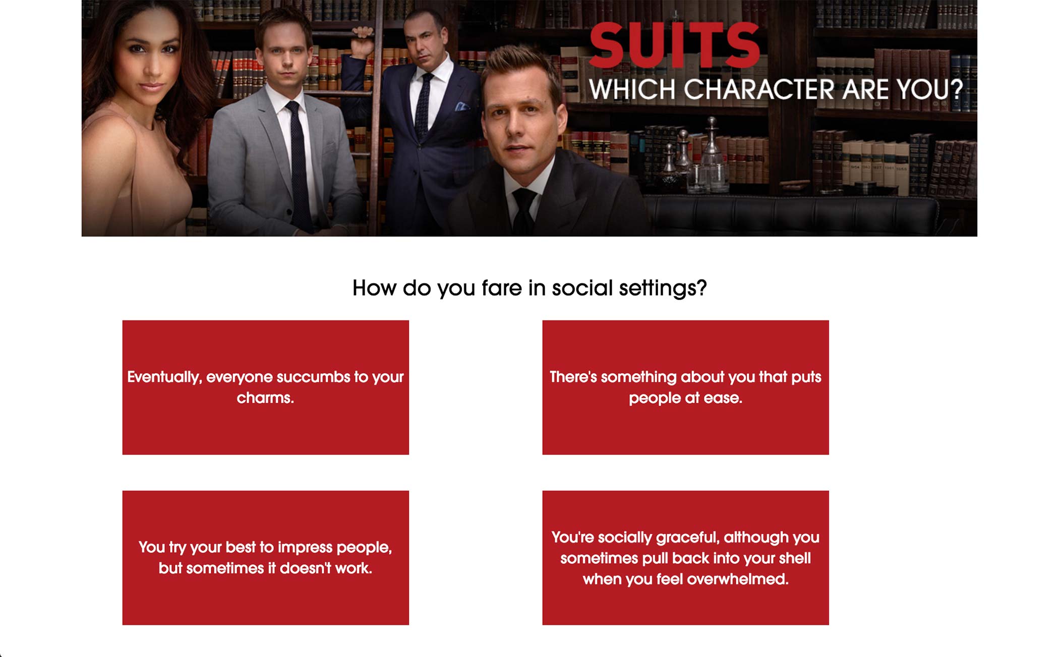 At the end of the quiz, the user sees the result of the quiz, whether it be a score or a character’s profile.