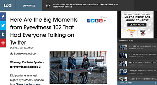 Provide chronological, interactive summary or behind-the-scenes and gain traction to the show.