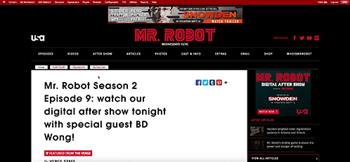 Reskinning a section of Mr. Robot, pulling in content from The Verge.