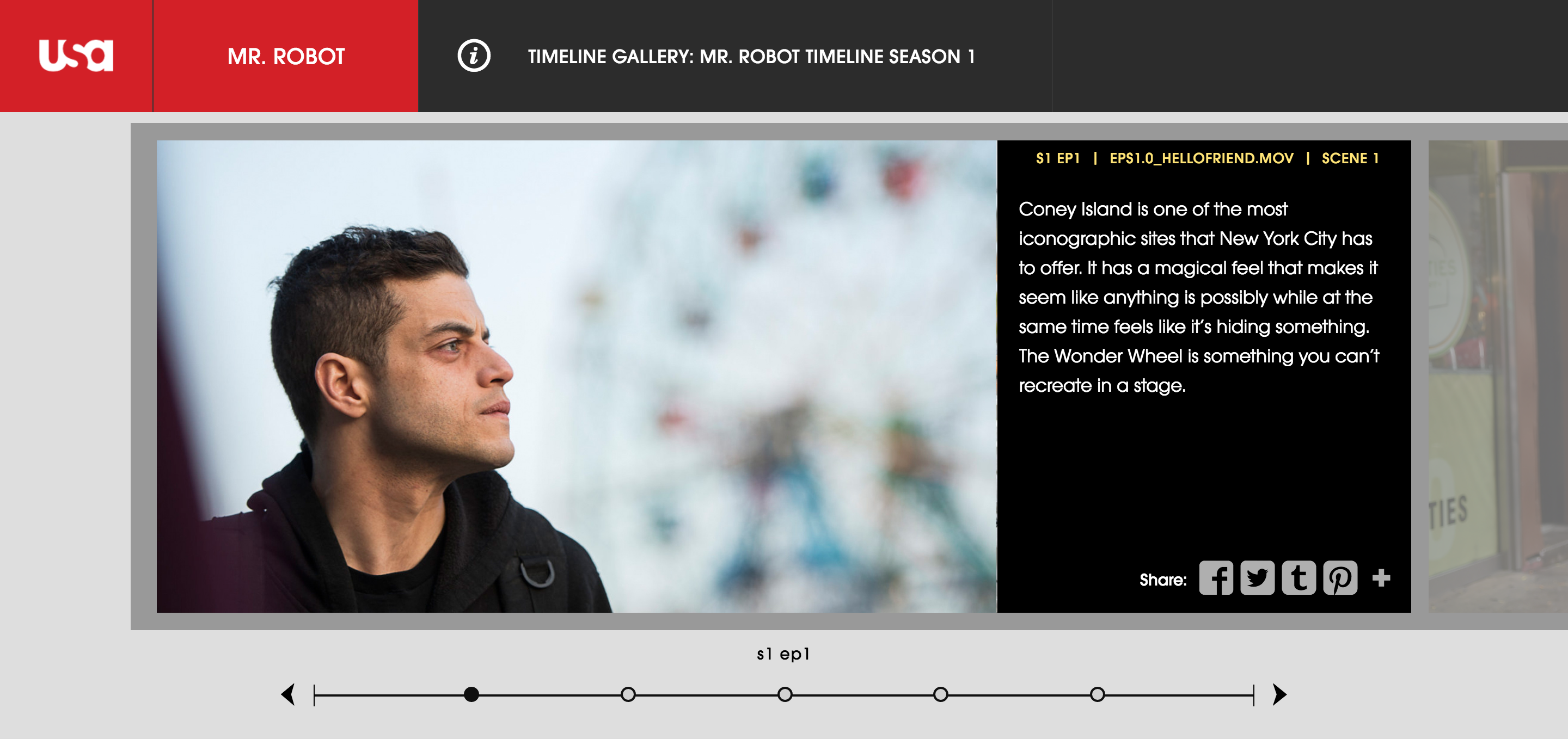 Timeline interface: UI on the bottom to skip through the episode.